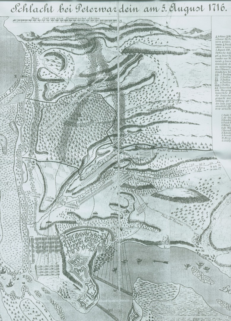 3. Peterwardein (http://www.peterwardein.com) Im Bayerischen Armeemuseum in Ingolstadt befinden sich sehr detaillierten Aufzeichnungen über die Feldzüge des Prinz Eugen von Savoyen im Jahre 1716-1718 nach Peterwardein, Temesvar und Belgrad. Daraus wurden ein Teil der beschriebenen Ereignisse entnommen. Da auch unser Heimatgemeinde Batsch und die nähere Umgebung darin eine wesentliche Rolle spielen, ist eine kurze Rekonstruktion des Aufmarsches des kaiserlichen Heeres und der Schlacht von Peterwardein sicher für unsere Landsleute von Interesse. Vor allem auch, weil sich Eintragungen in den Batscher Kirchenbücher befinden, welche mit den Soldaten und den damaligen in Batsch stationierten Regimentern in Verbindung stehen.