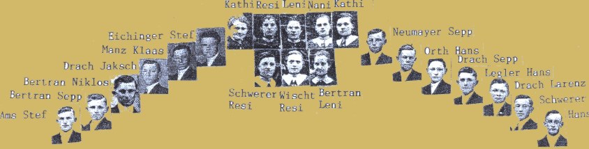 Heint will ich mol fun unsre Jugend vrzele, des tut mr arich gern wemr äldr werd. Also, wimr aus dr Schul kumme sin, hot mr glei zudr großa Madle zelt, to hen sich Kumradschafte zamgschtelt. No simr a pal tanze gange, an dr Oschtre odr Kirwi "simr eigschtande". Ich fang mol mit dr Kirwi aa. In alre Herrgots Fruh hotmr ufschtee misse, daß mr jo fertich isch bis d´Gäscht kumme. Mir hen alweil Gäscht krigt, mei Bäsle un Vettre mit Kindr vun Towarisch. Manchmol waare´s drei Wäge. To isch Tschastiert" waare, to hots schun in dr Fruh Paprikasch un Wei gewe. Mei Großvatr isch aa schun in alre Herrgots Fruh mit dr Bartbindi rumgschtirmt bis ´s endlich mol losgange isch. Unsr Kirwi war am 29.Juni, an Pedr un Paul, to war´s manchmol schun stark haas. Mir wahre 8 Kumradine: Orth Resi, Manz Leni, Orth Nani, Wischt Kadi, Schwerer Resi, Wischt Resi, Bertran Leni und ich, d´Manz Kadi. Mir hen uns scheen aazoge, no simr gschtrazt int Kirich, die war weit, grad am andre End vum Darf, tohemr viel frezele kenne bis to nuf. An dr Kirich war schun dr großi Fohne haus gschtande, der war soo groß, do hen sechs Buwe trage misse beim Umgang. ´s war a scheenes Hochamt, un weil Batsch dreisprochich war, ware die Messe a jedr Sundag, in anre andre . Die Prozesjon isch um die Dreifaltigkeit gange un widr zruck int Kirich. Wie´s Amt aus war, simr iwr die Kirwi Marik gloffe, a bißl Zuckr kaaft, no simr Haam gschtrazt, daß mr die gschteifte Reck rundr kriege, ´s war jo als so starik haas, to hemr als gschwitzt. Noch´m Mittagesse hot mr jo schun widr ans aazige denkt, weil mr uns jo wiedr troffe hen "zum tanze". Zerscht sint Seidestrimpf un die Schuh draa kumme. Des war a Ploog, "die Schuh", die Fieß ware jo so ufgwolle, weil mr Wertags Pepula, un ufm Feld Patschker aa khat hen. Uno Sundags die maasgfertichte Schuh, ja to kamr ner sage "Elfrtritschr Fieß un Parisr Schieli". Mir hen schun scheeni Schuh ghat